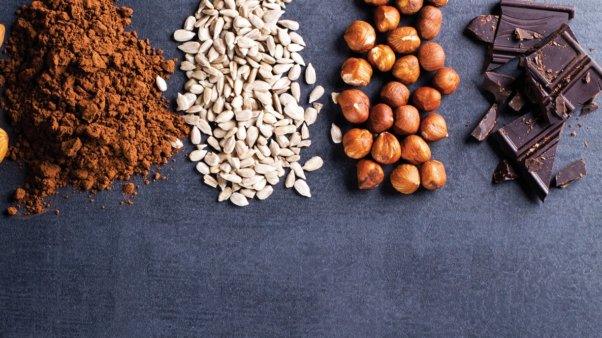 El chocolate negro, los frutos secos (almendras y nueces) y las semillas de soja. También hay mucho en las semillas que se siembran en suelos ricos en magnesio, como en el Rift africano, Japón, Cordillera de los Andes y en islas volcánicas de cualquier parte del mundo.